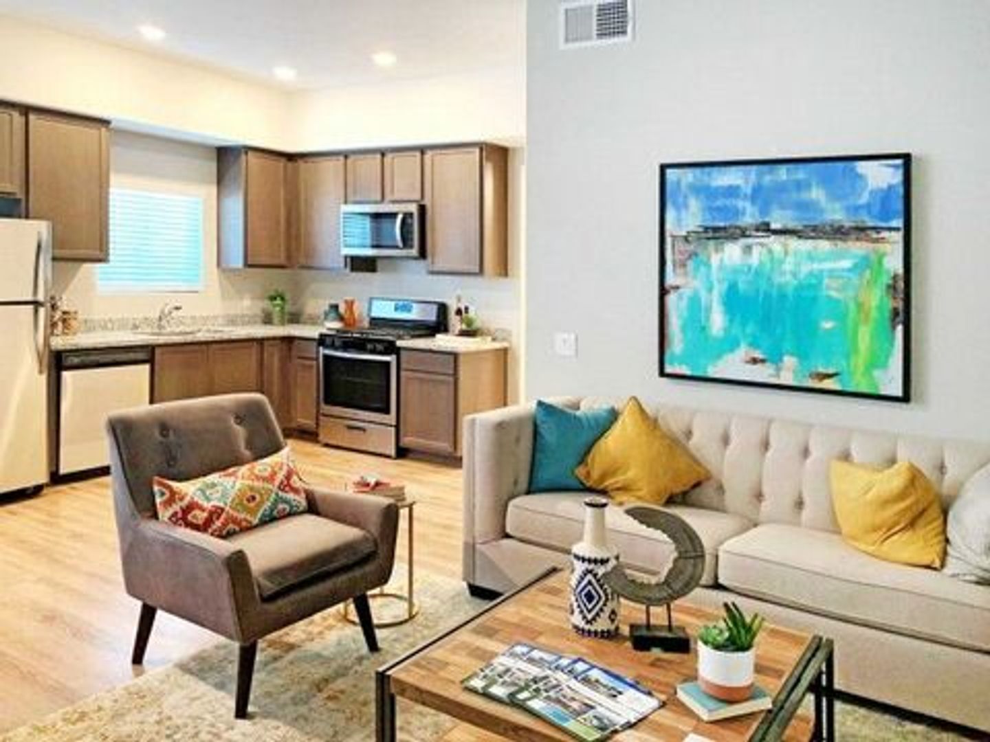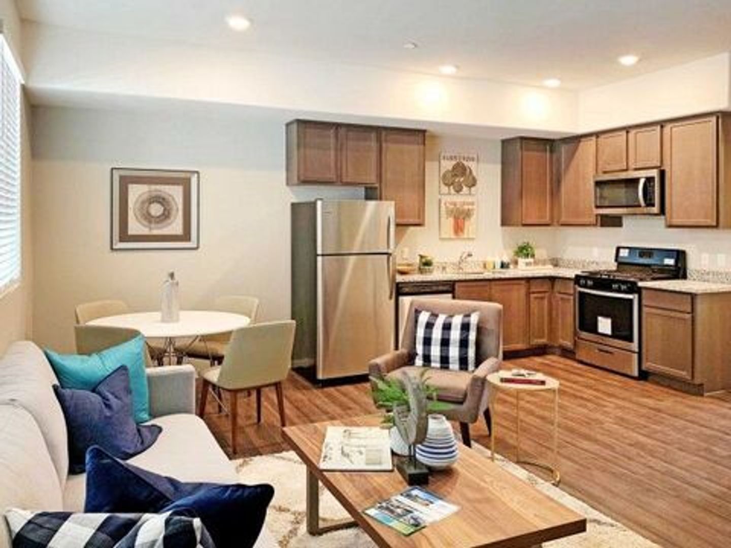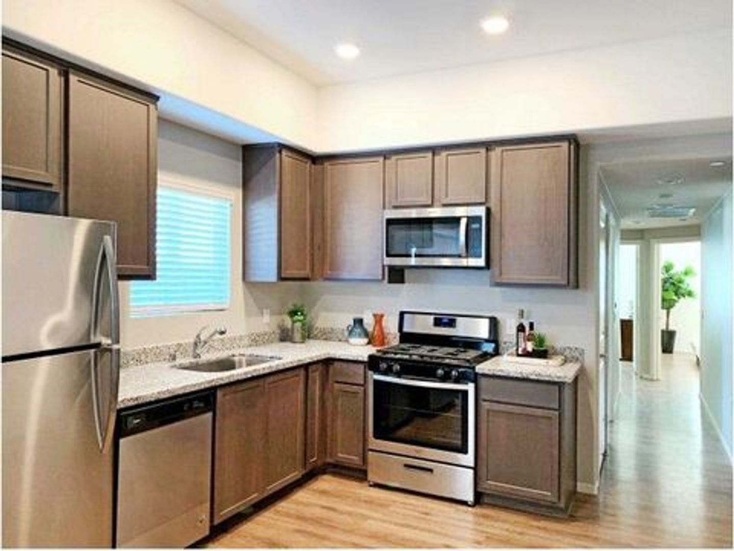 This is luxury living with upscale finishes, spacious apartment homes, custom cabinetry, granite counter tops, stainless steel appliances, secure walk-in access, washer and dryer inside of your home, wood-like floors (vinyl wood plank flooring), assigned parking, central air conditioning and heating system, club house, Jacuzzi/pool, BBQ area, Pet area.